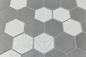 Коллекция «Агуста» (Kerama Marazzi) выполнена из керамогранита с матовой поверхностью. Монохромная палитра включает базовые оттенки белого и серого. Коллекция носит геометрический характер: шевронный рисунок и полигональная форма плитки при наличии отсутствия декора.