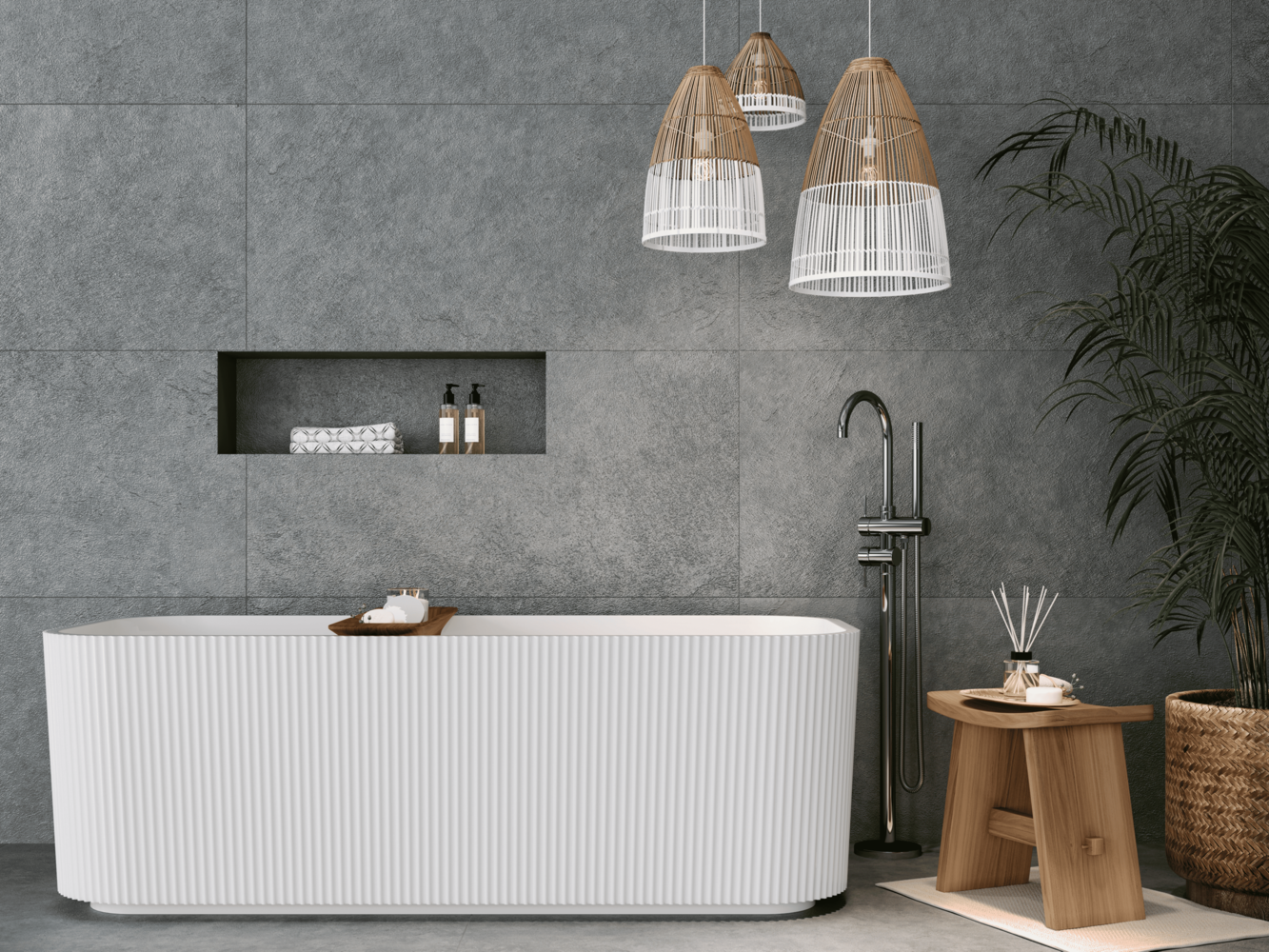 Крупный формат позволяет минимизировать количество стыков, что выгодно для реализации минималистичных и лофт-интерьеров, а также для визуального объединения смежных зон. Серый тон становится нейтральным фоном — он не конкурирует с предметами декора, но усиливает глубину цветов в окружении.