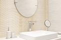 Коллекция сочетает нейтральную бежевую гамму и графичные геометрические мотивы, подходит для современных интерьеров с индустриальными или минималистичными акцентами.