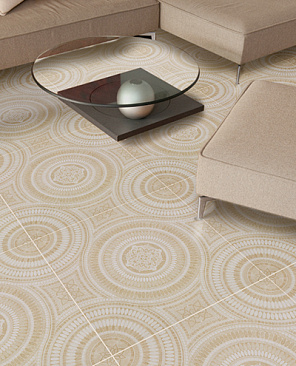 Декор выполнен в геометрическом стиле с выраженным паттерном, подходит для облицовки пола и стен в прихожей/холле, выдержан в сдержанном архитектурном характере коллекции.
