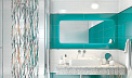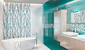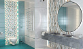 Декор коллекции сочетает флористические мотивы и акварельную технику: плавные переходы цвета и размытые контуры создают эффект глубины и легкости, характерный для акварели. В композициях заметны геометрические элементы, которые служат акцентом и структурируют рисунок, обеспечивая возможность комбинирования декоративных и однотонных модулей в едином оформлении.