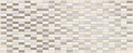 По сути это декоративный элемент группы «Декор», в котором объединены геометрические мотивы и декоративные надписи, выполненные в мозаичной манере. Рисунок представляет собой упорядоченную мозаику с геометрической структурой и включениями графичных надписей, что придаёт панели схожесть с текстурированной фрагментной облицовкой, хорошо сочетающейся с равномерной однотонной плиткой из той же коллекции.