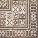 Плитка формата 402×402 мм задаёт умеренную модульность: каждый элемент заметен, но не доминирует, что полезно для зон с интенсивным движением. Матовая поверхность смягчает отражения и подчёркивает текстуру, делая переходы между элементами рисунка естественными.