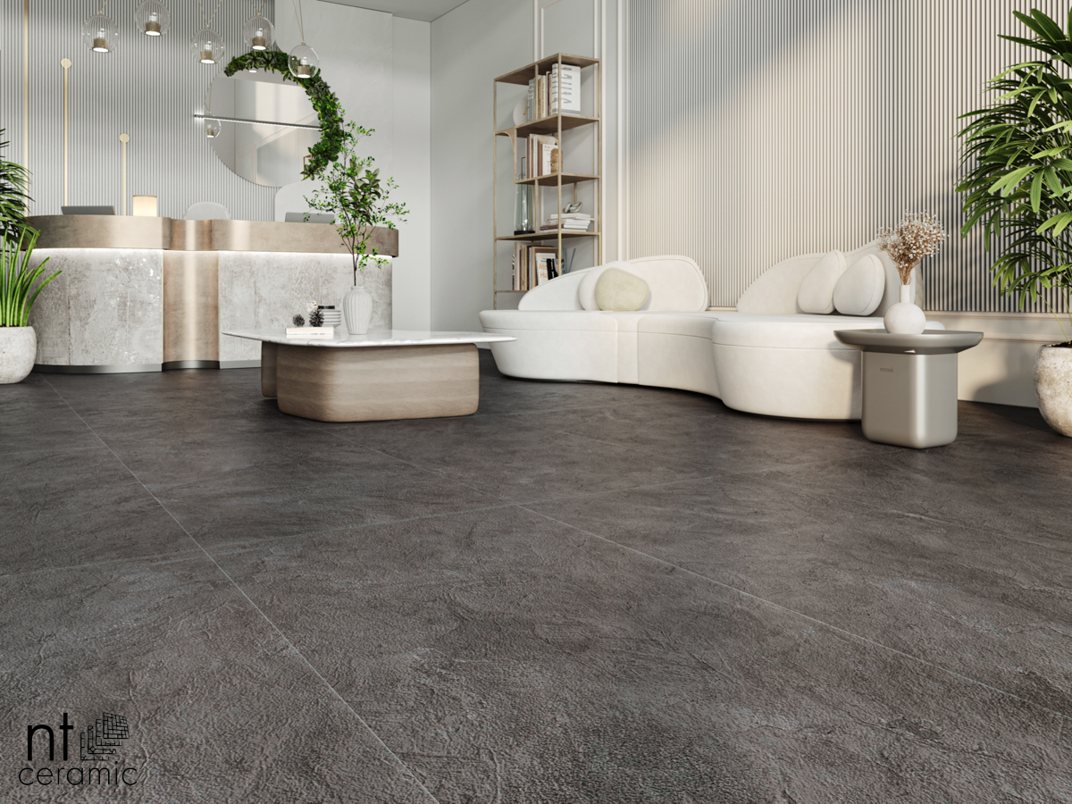 керамогранит, плитка 600x1200, лаппатированный, глянцевая поверхность, серый камень, плитка для холла, NT Ceramic, коллекция Granite, крупный формат, каменный рисунок, интерьерный керамогранит, половая плитка