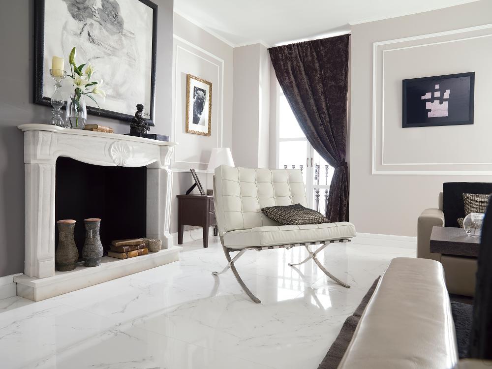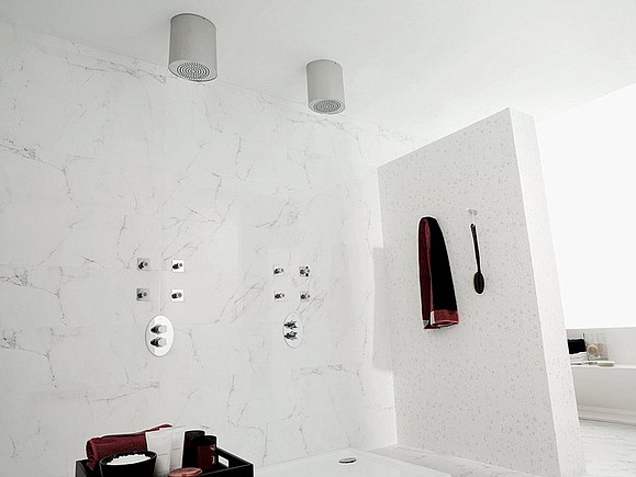 Коллекция Marmol Carrara Wall от Porcelanosa — стеновая керамическая плитка с имитацией мрамора Carrara. Базовые цвета — белые оттенки, поверхность — глянцевая. Серия включает варианты с геометрическим рисунком и мозаичные модули.
