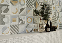 Материал — керамика, поверхность матовая, что обеспечивает минимальную отражающую способность и практичность в уходе. Нейтральные базовые цвета и имитации дерева и бетона позволяют сочетать коллекцию с различными отделочными материалами и мебелью. Отсутствие декоров делает серию подходящей для однотипной облицовки площадей, где важна спокойная фактура и однородность покрытия.