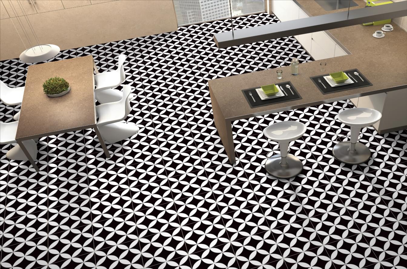 Коллекция Twenties от Creatile представлена керамогранитом с матовой поверхностью, сочетающим базовые оттенки белого и чёрного. Плитка выполнена в монохромной гамме, что обеспечивает сдержанный и лаконичный вид изделий, подходящий для минималистичных интерьеров.