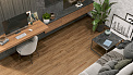 Матовая поверхность приглушает блики и придаёт отделке благородную фактуру: плитка кажется мягкой на ощупь, но остаётся износостойкой и легко поддерживаемой. Коричневые тона варьируются от светло-кофейных до глубоких оттенков, создавая естественный градиент древесного рисунка.