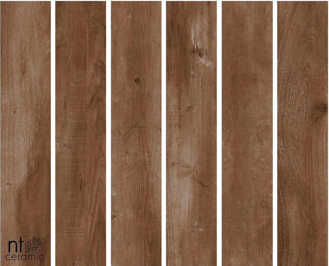 Керамогранит из коллекции Wood Honey от NT Ceramic передаёт тёплую фактуру древесины без лаковой блесткости: матовая поверхность смягчает свет и подчёркивает глубину коричневых оттенков. Плитка с рисунком «древо» имитирует натуральные волокна и лёгкую неравномерность тона, создавая ощущение подлинной текстуры под ногами.