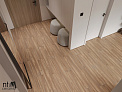Технические особенности керамогранита обеспечивают практичность в зонах с высокой проходимостью: плитка устойчива к износу и легко очищается, при этом сохраняет визуальную глубину древесного рисунка. Толщина 10 мм и крупный формат позволяют реализовать аккуратную укладку с минимальными швами, что важно для поддержания спокойной, монолитной поверхности.