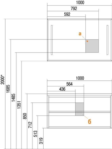 тумба, усиленный кронштейн для подвески– 2; ящики с механизмом демпфирования– 2; коврики против скольжения– 4; раковина - отдельно