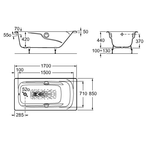 Фирма : Roca Страна производитель : Испания Материал: чугун Комплектация: ванна, ручки.Длина, мм: 1700 Ширина, мм: 850 Глубина, мм: 440 Высота, мм: 570 Цвет: белый Гарантия: 10 лет